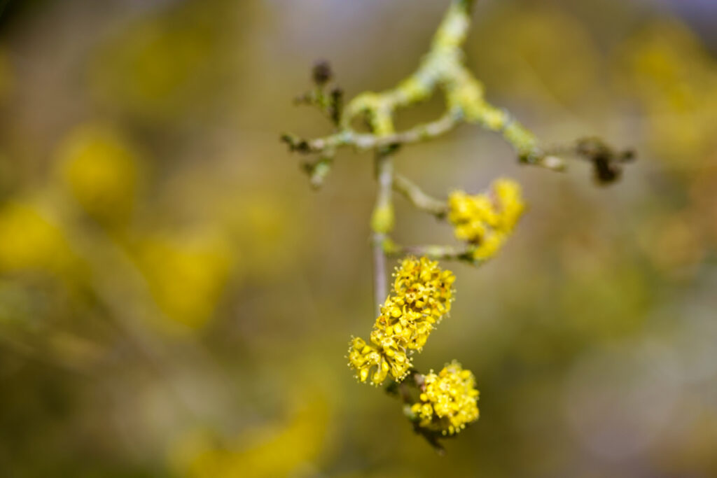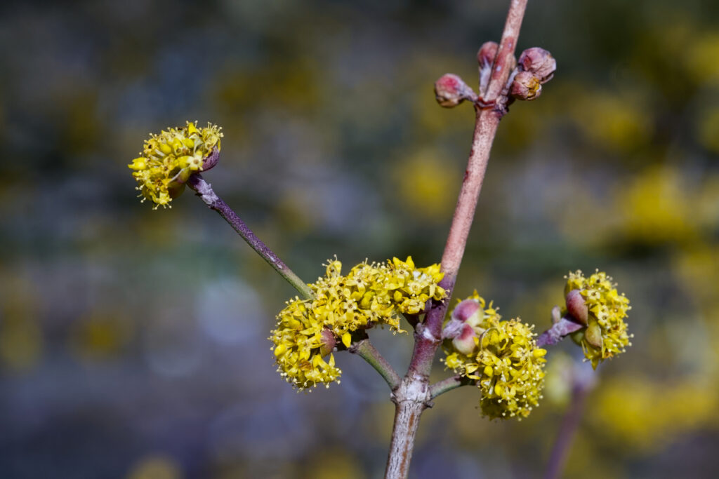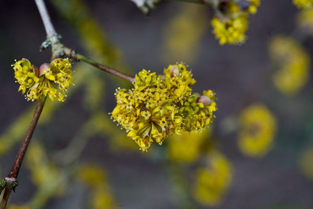 So schön sah die Blüte der Kornelkirsche im März 2023 im Bot. Garten in Kiel aus