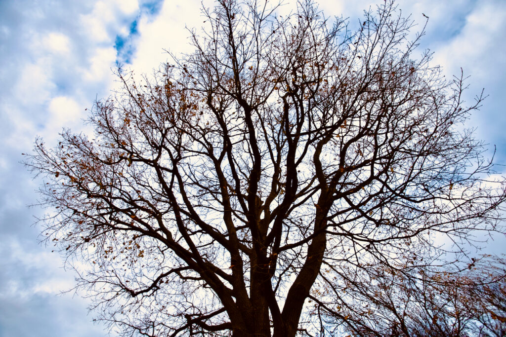 Eine tolle große Eiche, ein Bergahorn, ein Apfelbaum und einen Baum, den ich nicht noch nicht kenne (ich bin noch nicht dazu gekommen mich vorzustellen und ihm geht es wohl genauso 😉 ) verlieren gerade reichlich Laub.