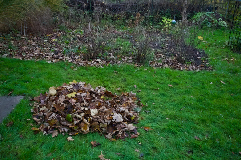 Einen großen Teil davon habe ich gestern auf den Beeten verteilt, denn Laub gilt als hervorragender Dünger.