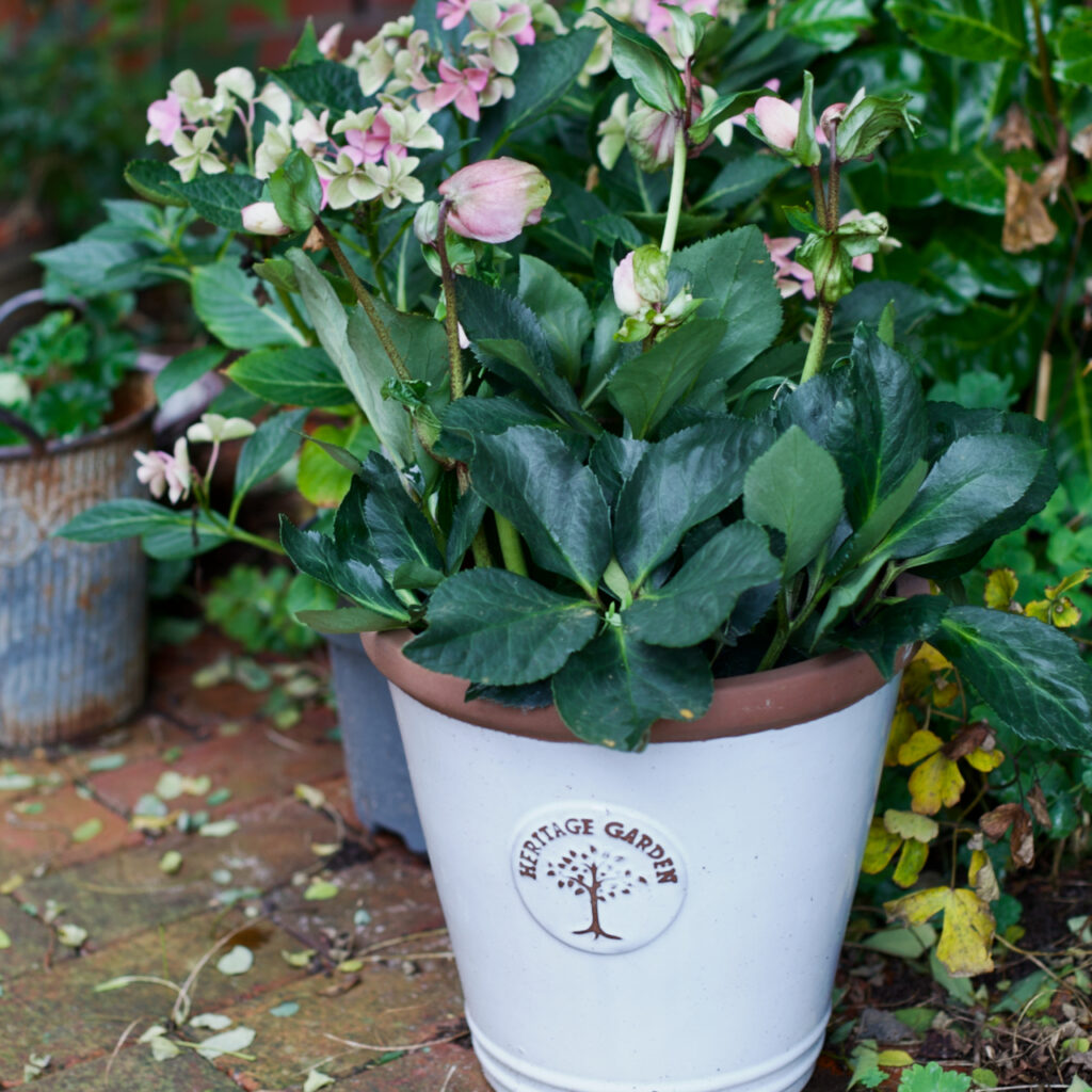 Die vor kurzem gekaufte und vor der Haustür im Topf stehende Christrose blüht schon jetzt ganz wunderbar. In der Natur hat sie allerdings noch Zeit, denn da beginnt die Blüte meist erst ab Dezember. Noch sind die Temperaturen bei uns deutlich im Plus-Bereich, so dass sie noch ein bis zwei Wochen stehen bleiben kann. Danach werde ich sie ins Halbschatten-Beet pflanzen, wo bereits eine andere Christrose steht.