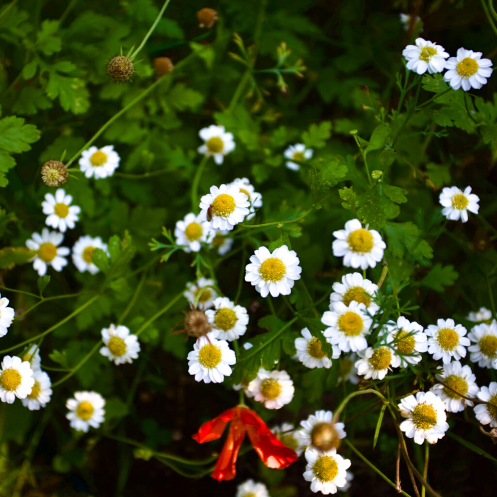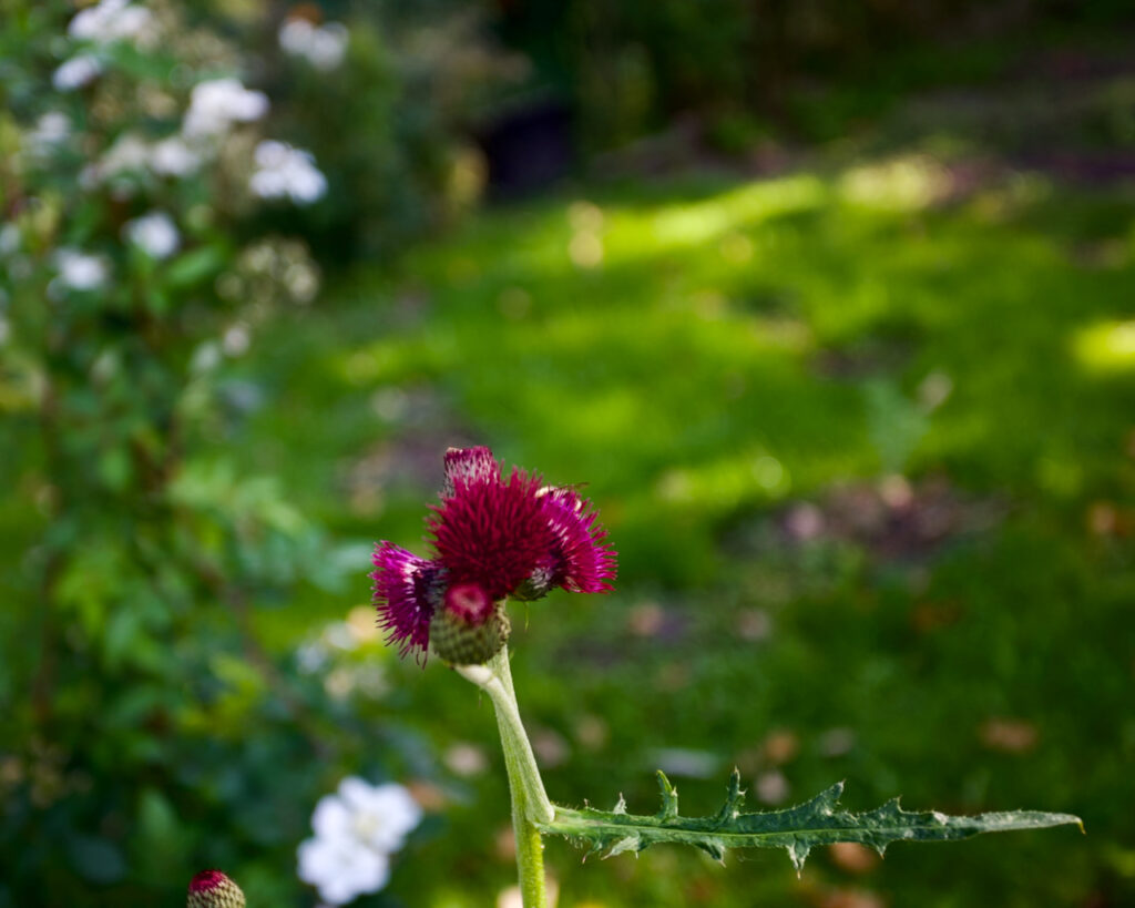 Viel Freude haben mir in diesem Jahr sowohl das Mutterkraut als auch die rote Purpur-Kratzdistel bereitet. Beide blühten nach einem Rückschnitt im Sommer im Oktober noch mal und boten für allerlei Insekten noch Nahrung.