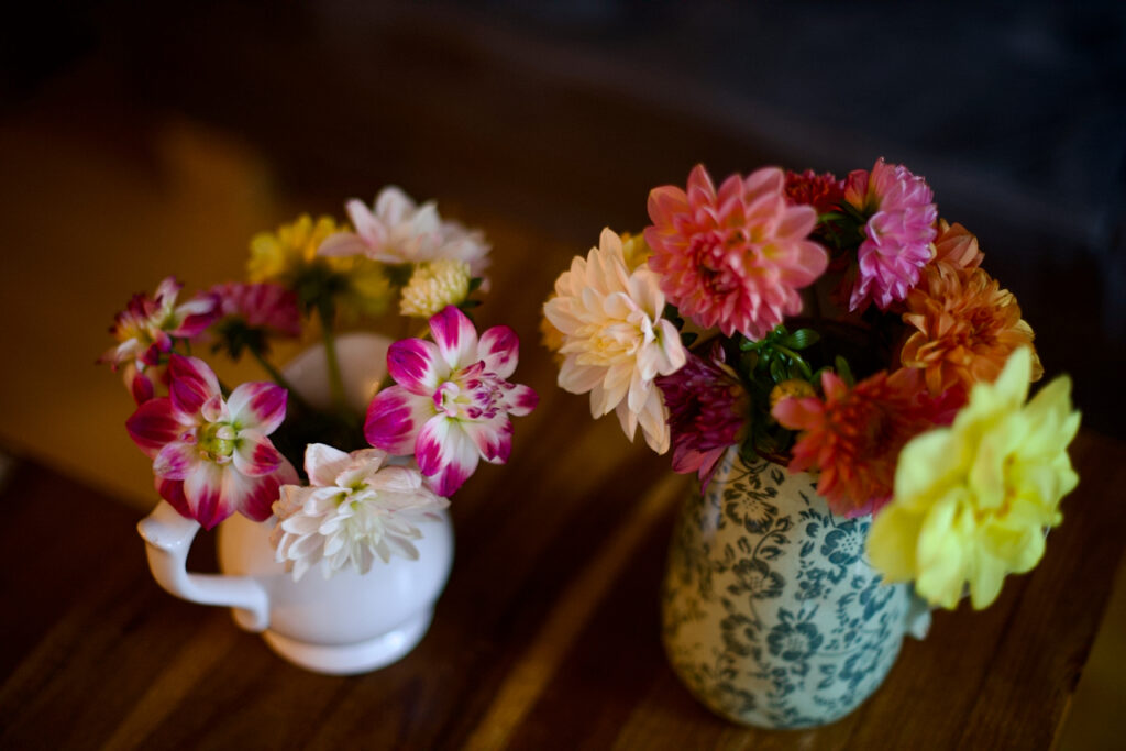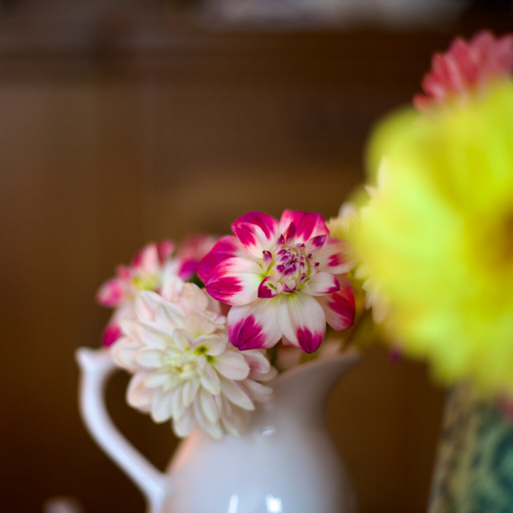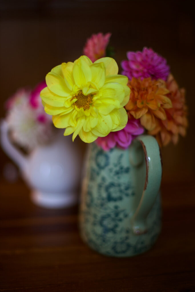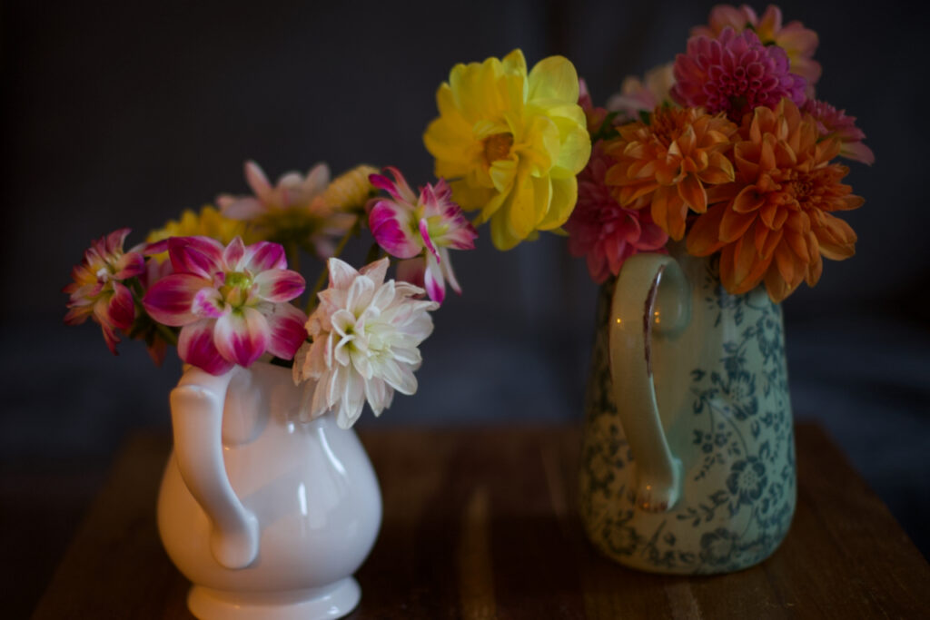 Gestern aber konnte ich vom Blumenfeld noch mal sehr schöne Dahlien pflücken und freue mich jetzt über die späte Blütenpracht in der Vase. Viele schöne Blüten waren noch dort. Das wird sich in den nächsten Tagen ändern, denn der erste Sturm dieses Herbstes ist durchgezogen. Zum Glück waren die Schäden bisher überschaubar.