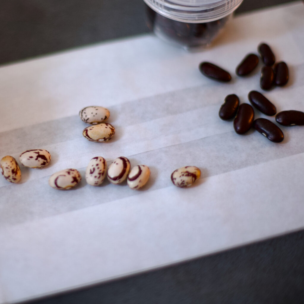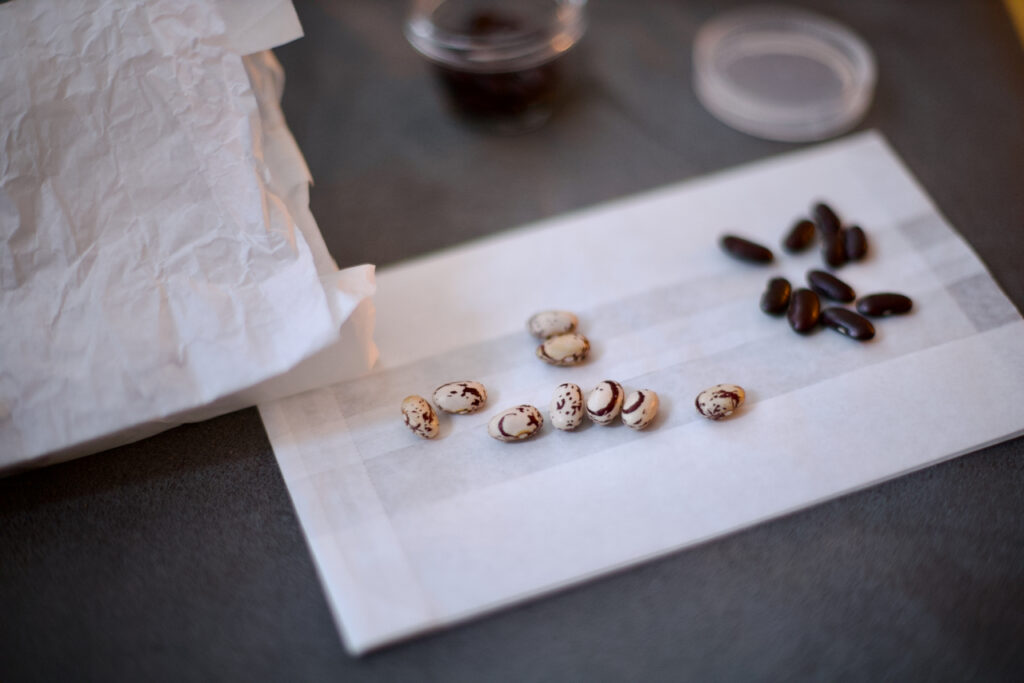 Sehr spät in diesem Jahr hatte ich auch erst die hübschen Borlotti Bohnen ausgesät, die ich im letzten Jahr auf dem Blog von Elke gesehen hatte. Ich glaube erst Ende Mai/Anfang Juni dachte ich, ach es wäre doch nett sie doch noch auszusäen. Vorher war weder Platz noch Zeit und so landeten sie, vier Bohnen verteilt auf zwei kleine Töpfe im Gewächshaus. Dort waren sie wenigstens etwas geschützt vor den allgegenwärtigen und hungrigen Schnecken. Bisher gehen meine Erfahrungen mit Bohnen gegen null. Umso mehr habe ich mich dann doch gefreut als neben den Tomaten auch die Bohnen mit einem mal Blüten zeigten. Sie mussten zwar ordentlich gegen den Schneckenfraß kämpfen, aber, vier Schoten überlebten. Mit der Ernte hatte ich dann allerdings doch etwas zu lange gewartet, denn die Schoten waren mit einem mal nicht mehr grün, sondern gemustert und sahen sehr schön aus. Eine Schote habe ich gleich weiterverschenkt und dafür ein Töpfchen mit roten Bohnen bekommen. Sehr lecker schmecken beide Sorten, wenn man sie vorher etwas einweicht und eine längere Kochzeit muss man auch berücksichtigen.