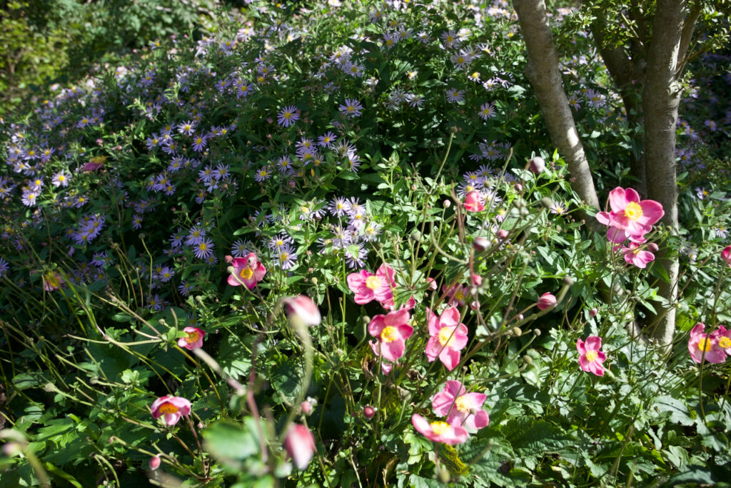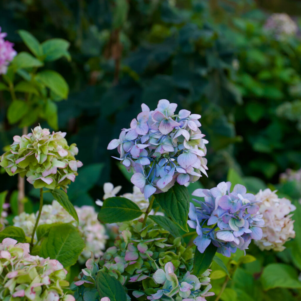 Im allerersten Beet leuchten noch einige Hortensien.