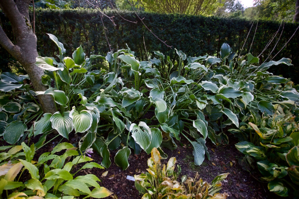 Weiter geht es zu den Funkienbeeten. Einige sehen noch richtig schön aus, bei anderen hatten sicherlich auch die Schnecken geknabbert.