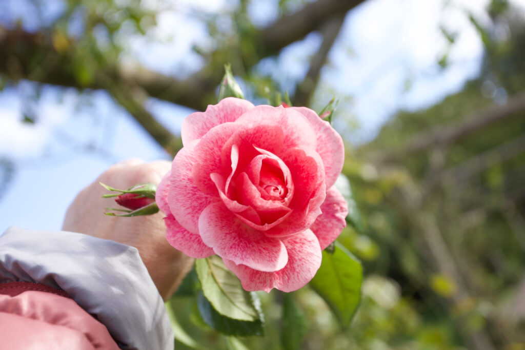 Auch bei den Rosen fehlten ein paar Schilder, aber herrlich sind ihre Blüten. Und, passte meine Jacke die ich an dem Tag trug, nicht nahezu perfekt zur Farbe der Rosenblüte?