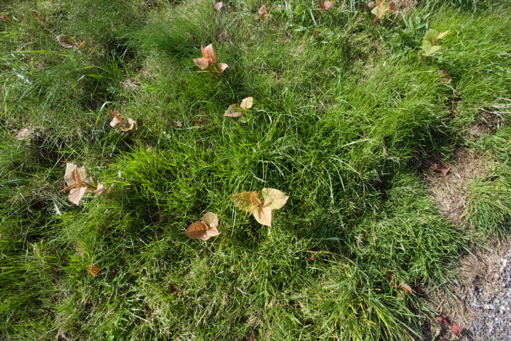 Auf der Wiese auf der anderen Seite des Weges kommen schon viele neue Stauden des Knöterichs heraus. Hoffentlich behalten sie dort das Problem im Auge.